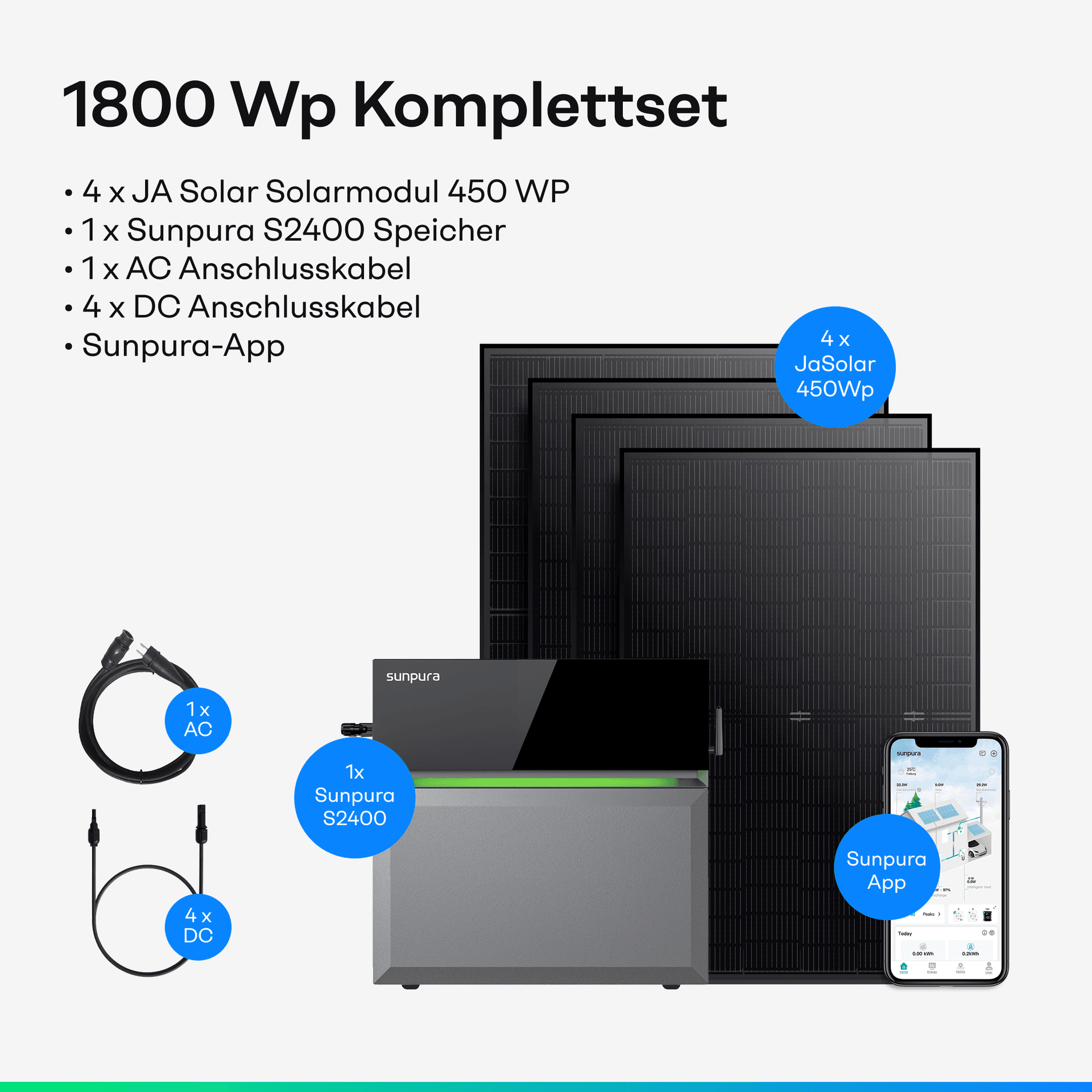 Bifaziale JA Solar Module überzeugen durch hervorragende Temperaturstabilität und eine auf maximale Erträge optimierte Auslegung – ideale Voraussetzungen für dauerhaft hohe Energiegewinne. In Kombination mit dem Sunpura S2400 nutzt Du jede Kilowattstunde effizient, speicherst Deinen Solarstrom smart und erhöhst Deinen Eigenverbrauch deutlich.